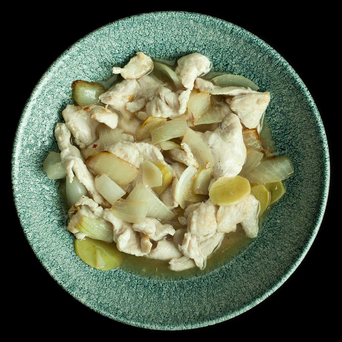 Pokè Bowl con riso sushi, pollo teriyaki, avocado, carota, feta greca, germogli di soia, olio evo.