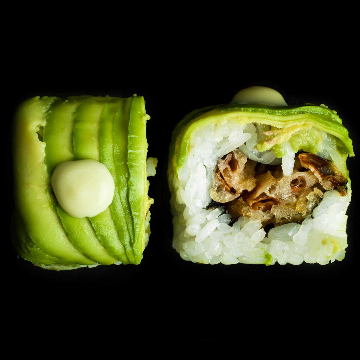 Granchio imperiale in tempura, avocado e maionese Kewpie.