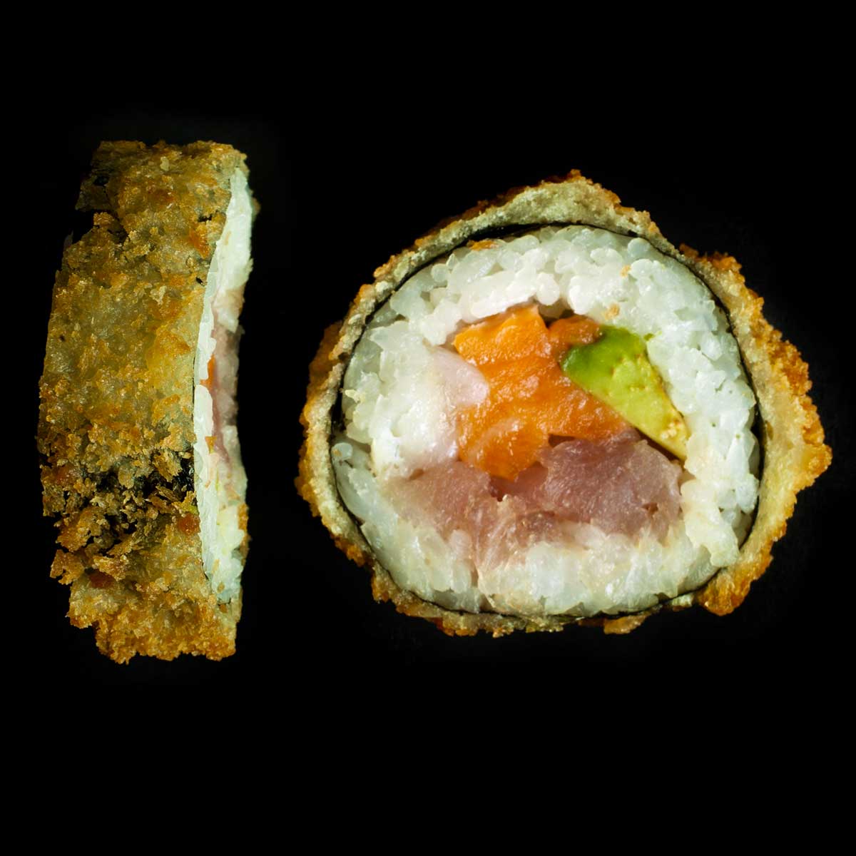 Salmone, tonno, branzino, avocado, salsa teriyaki, maionese piccante. 8 pz