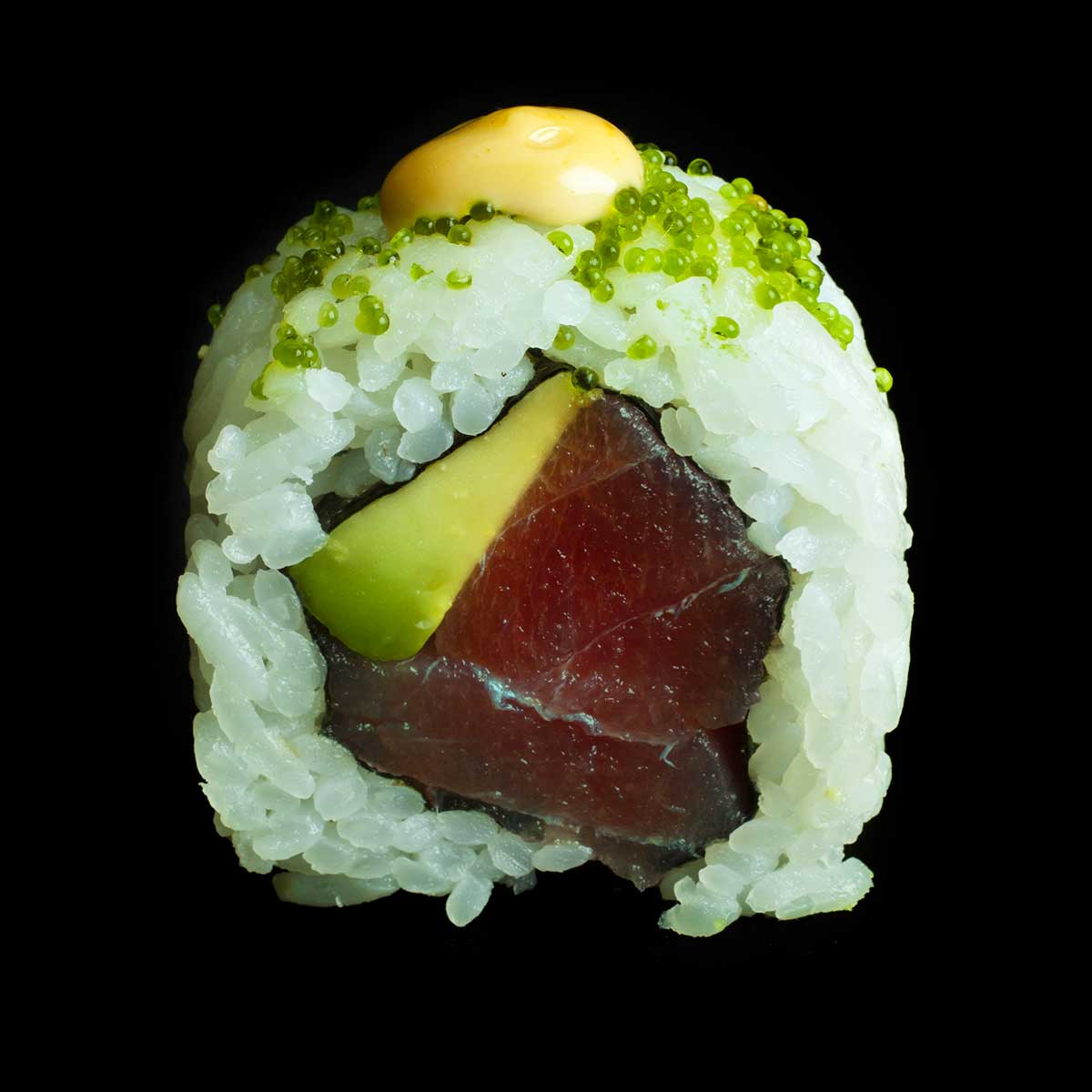 Tonno, avocado, caviale tobiko e maionese piccante.