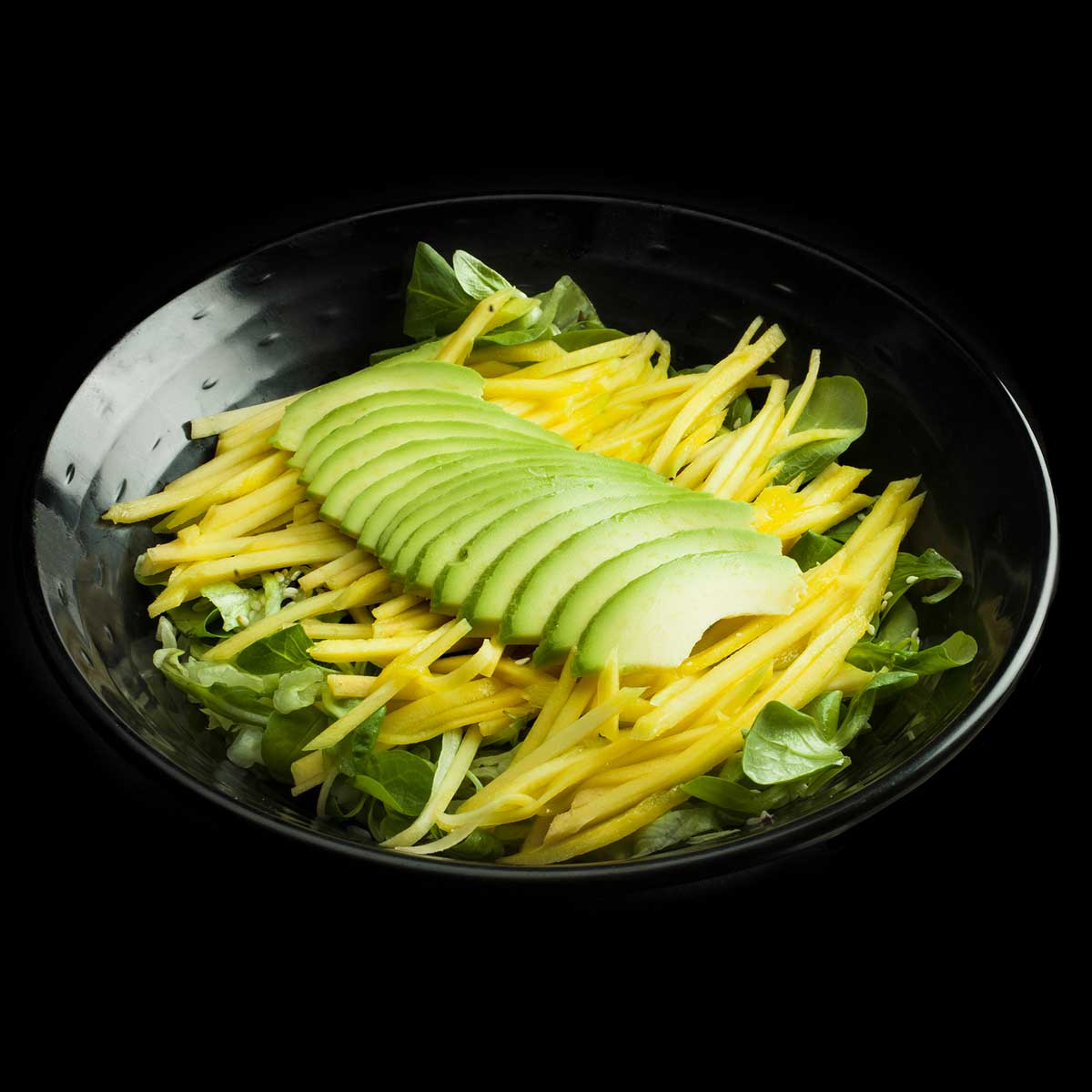 Salad with avocado, mango and Goma sauce.