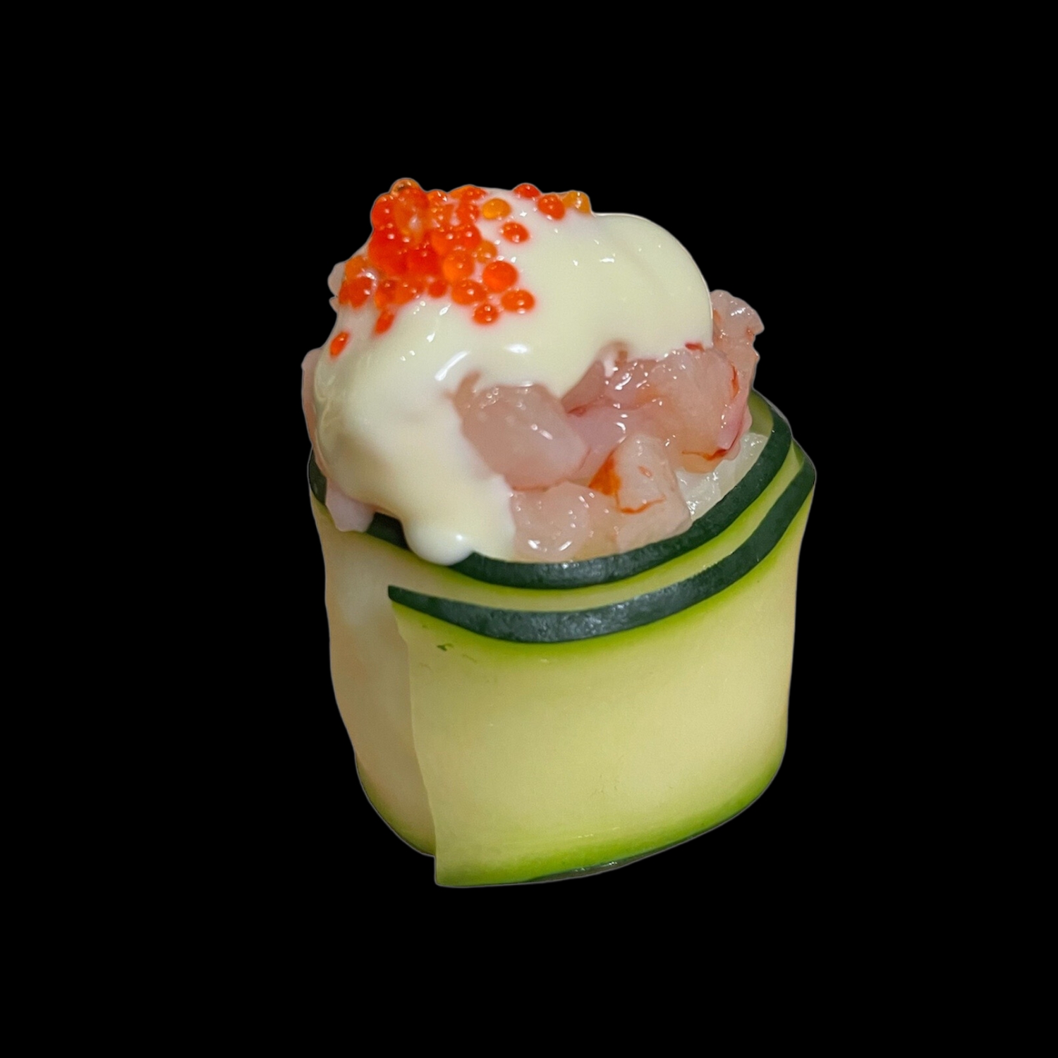 Zucchina scottata, tartare di gamberi rossi, maionese e tobiko